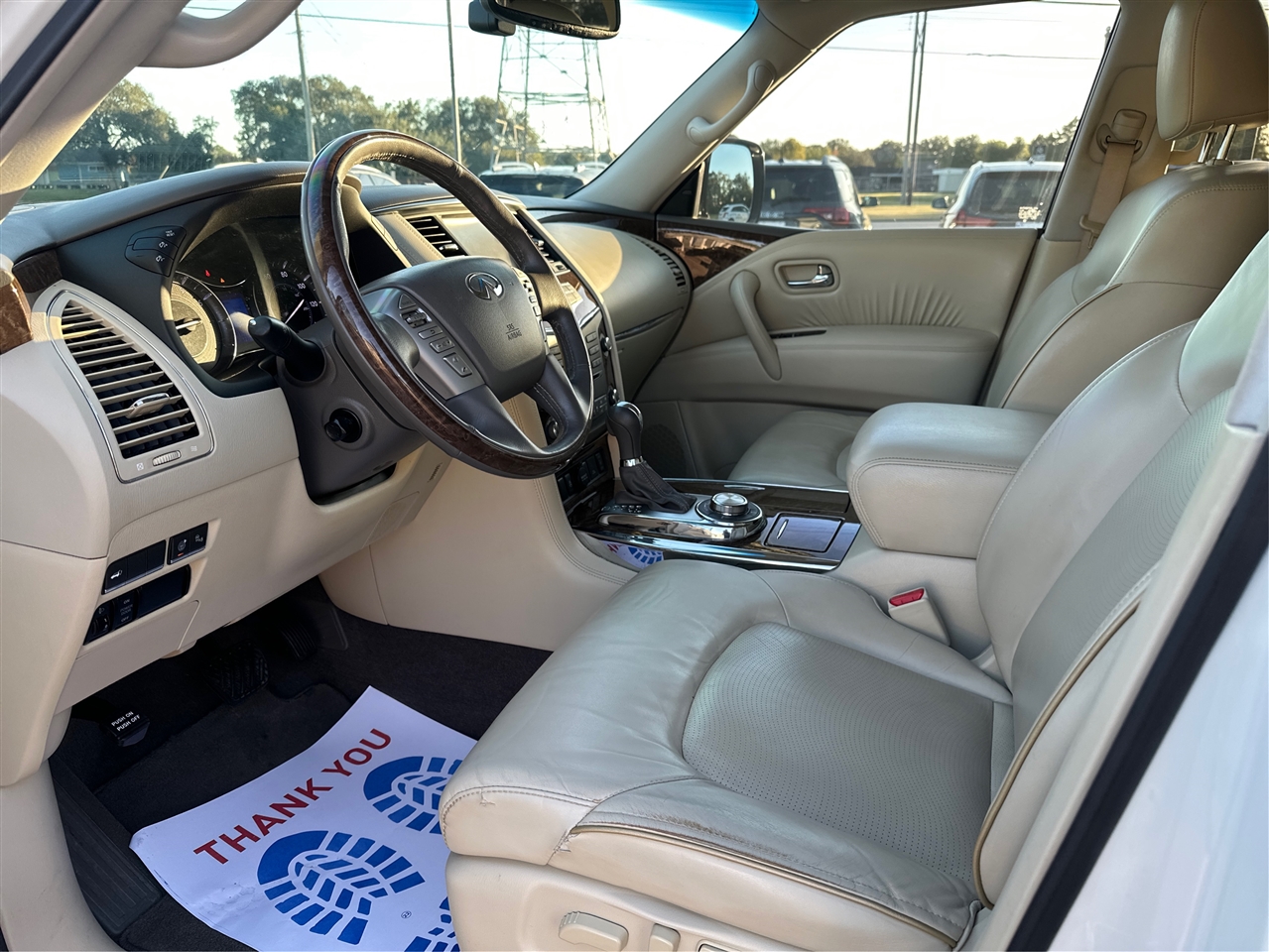 Cruise through the city streets in style with this sleek and elegant 2017 white Infiniti QX80. With its powerful engine and smooth ride, you'll feel like you're gliding on air as you zip around town. This beauty comes with a Carfax report available, allowing you to drive with peace of mind knowing the car's history is crystal clear.
